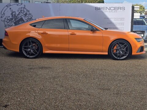 We are thrilled to have on our forecourt this stunning Audi RS7 Performance finished in Solar Orange. Only 1 RS7 Performance was specified in this colour and we are delighted to be able to offer it for sale. The previous owner requested from Audi upon purchase that they paint the callipers Solar Orange to match the bodywork which looks fantastic! The wheels have been replaced and powder coated a matte grey to match the accents around the car - every where you look on this car, it is absolutely stunning! The car is presented with a full main dealer service history and was last serviced in August of this year.Due to the nature of the vehicle we will request proof of funds/ finance acceptability prior to test drives.